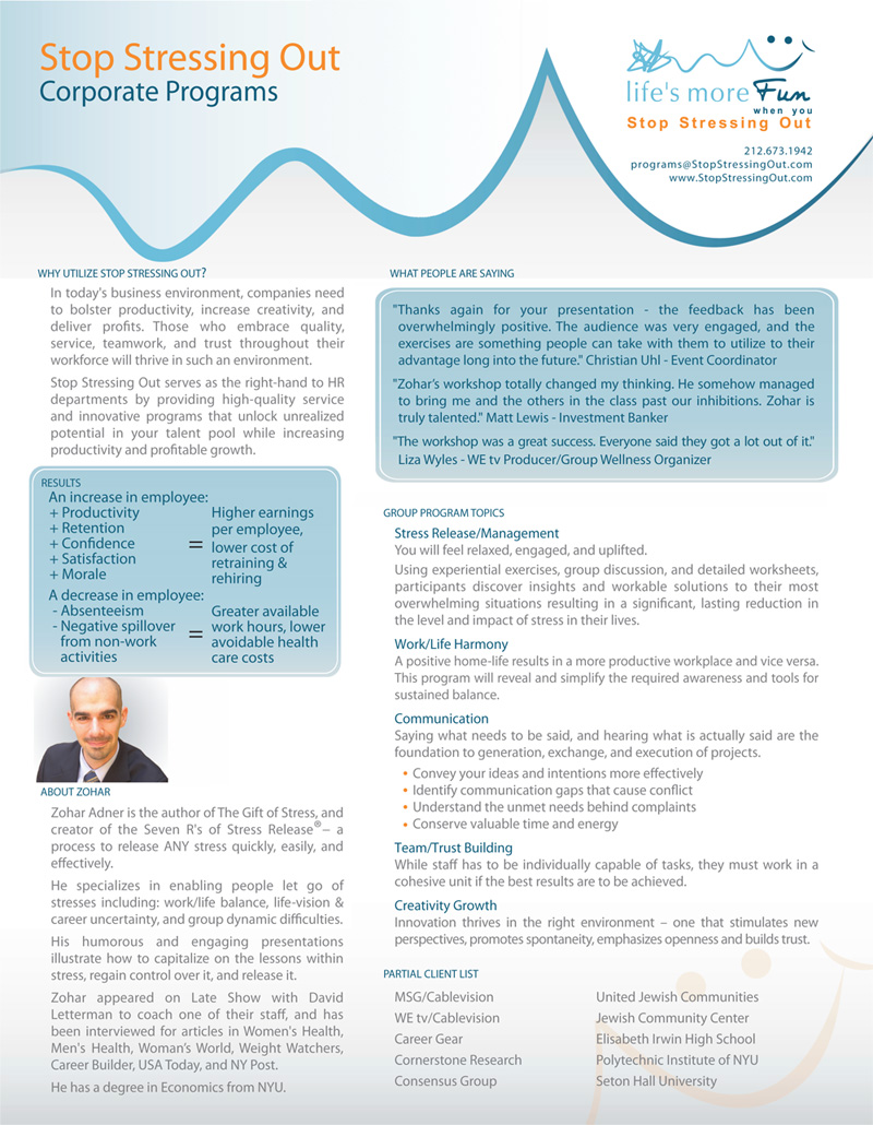 Additional information and benefits are available on Stop Stressing Out's Corporate one-sheet.
